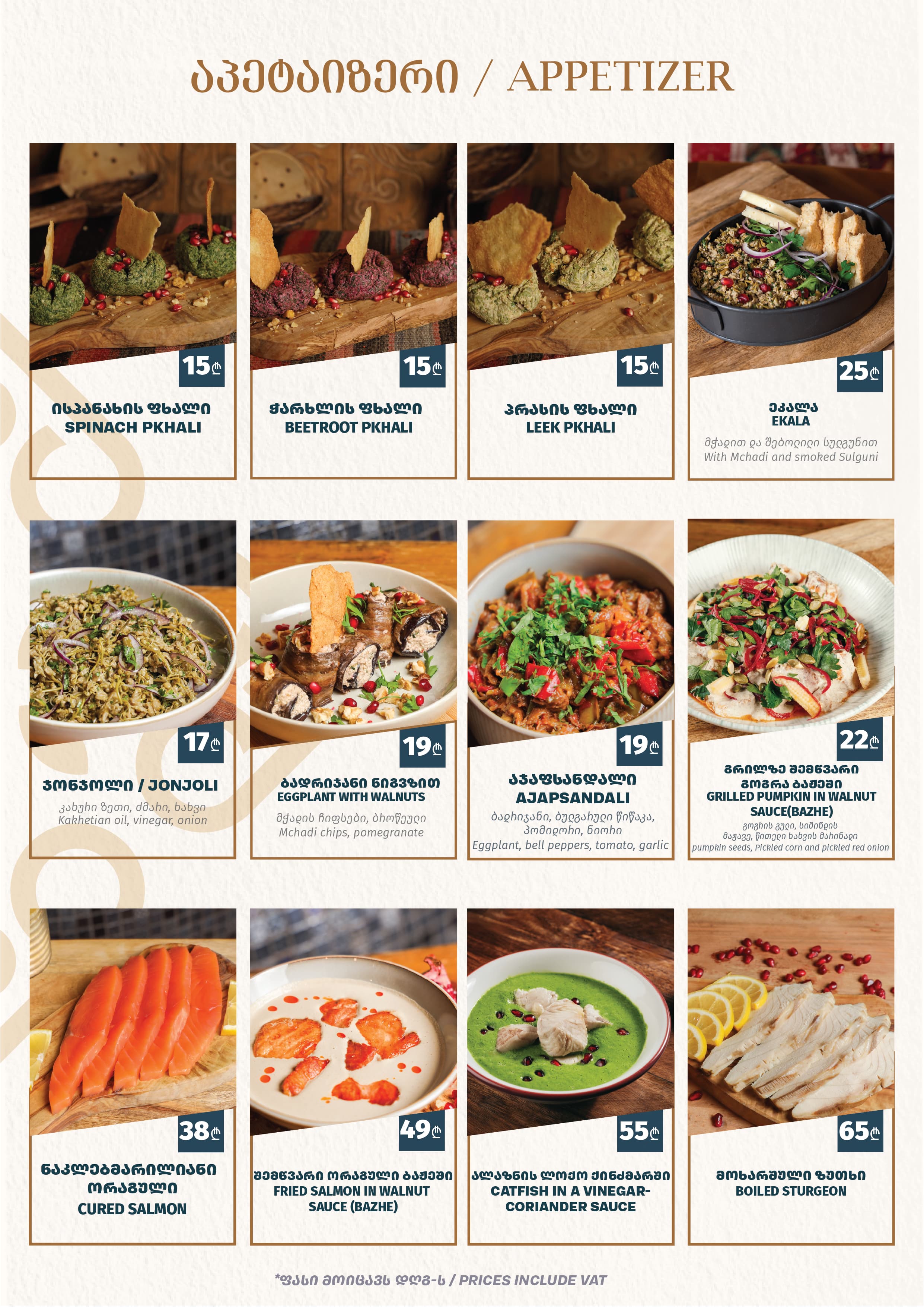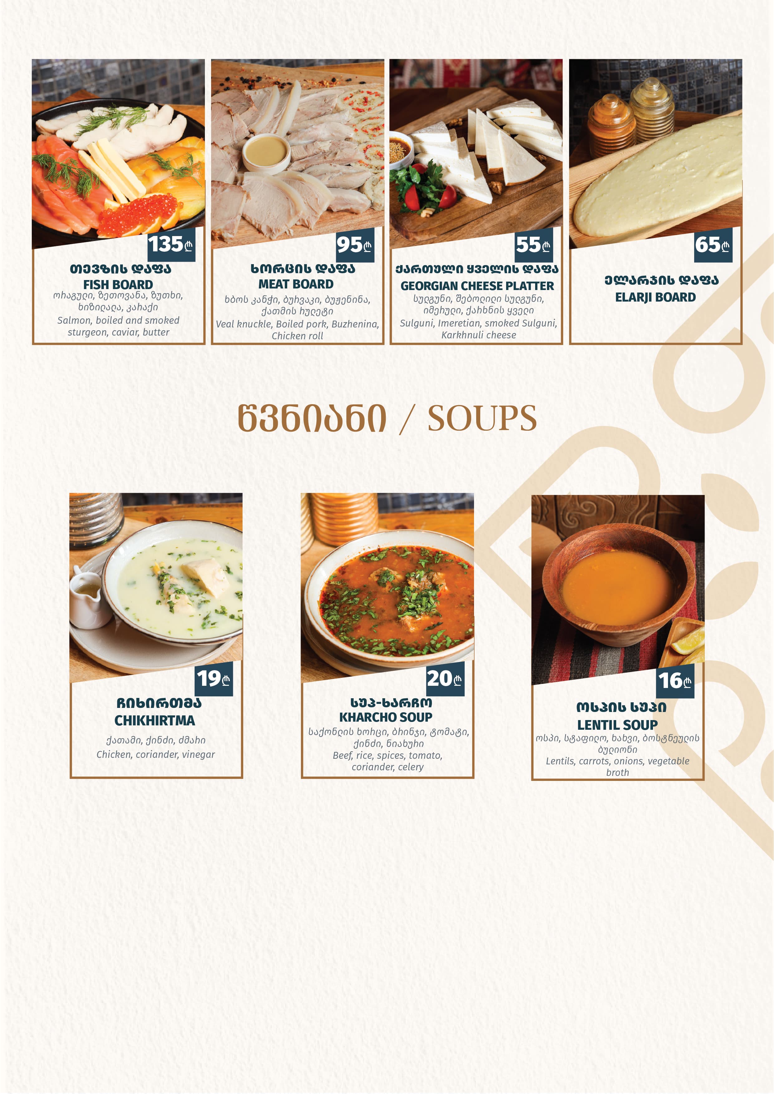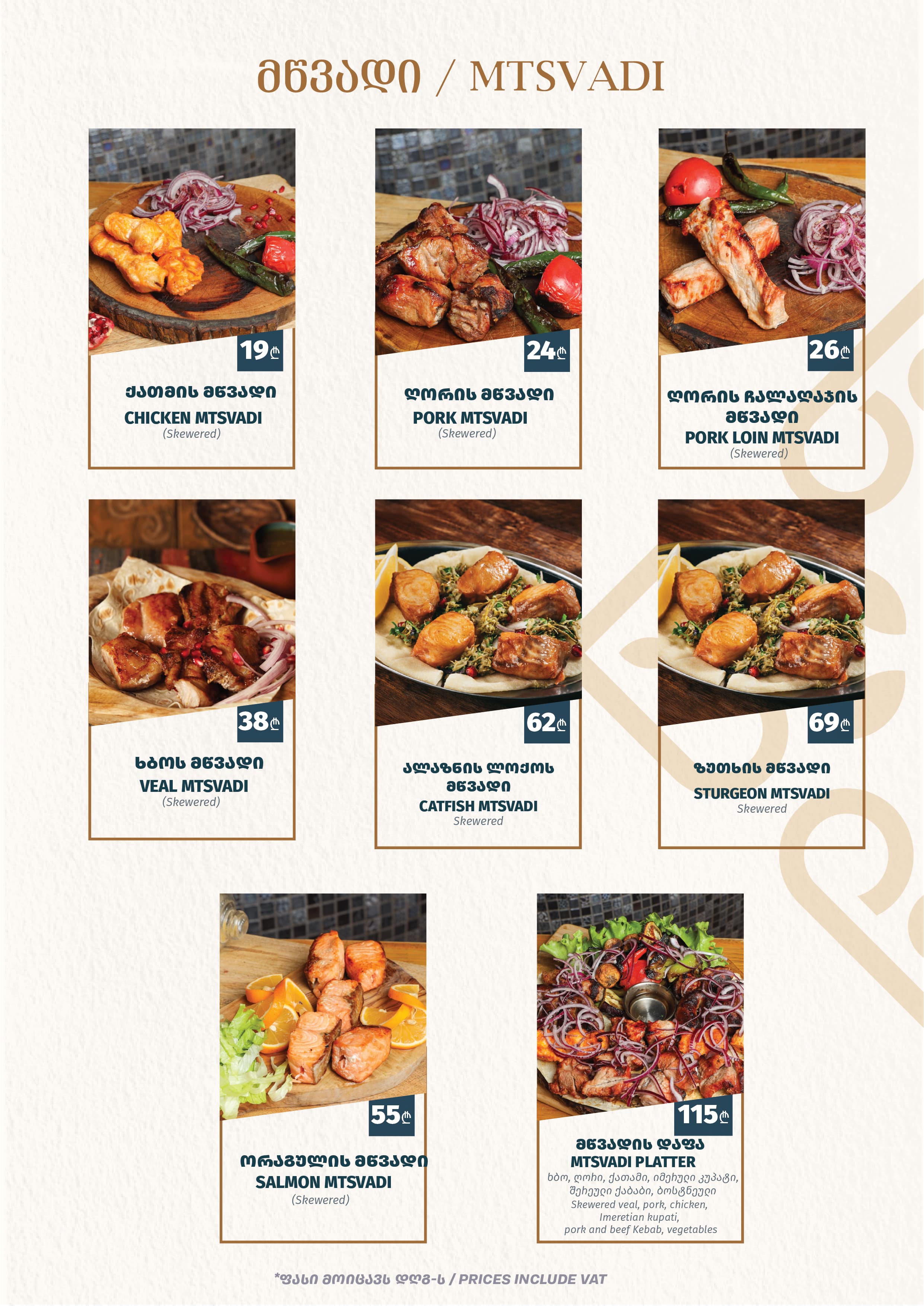 რესტორნის სამუშაო საათები: 17:00 - 01:00 სამზარეულოს სამუშაო საათები: 17:00 - 23:00