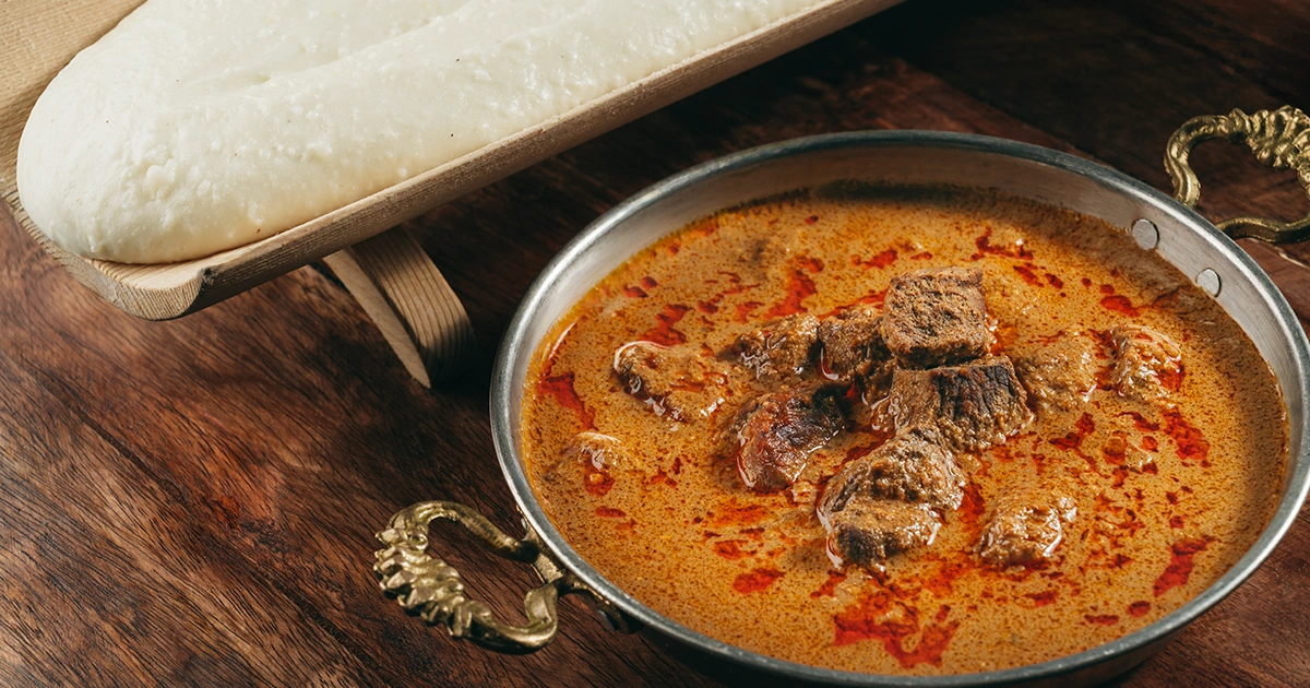 Traditionally, kharcho with walnuts is most often served alongside ghomi, a thick creamy cornmeal porridge, with a mild flavor that balances well with the fats and spice.