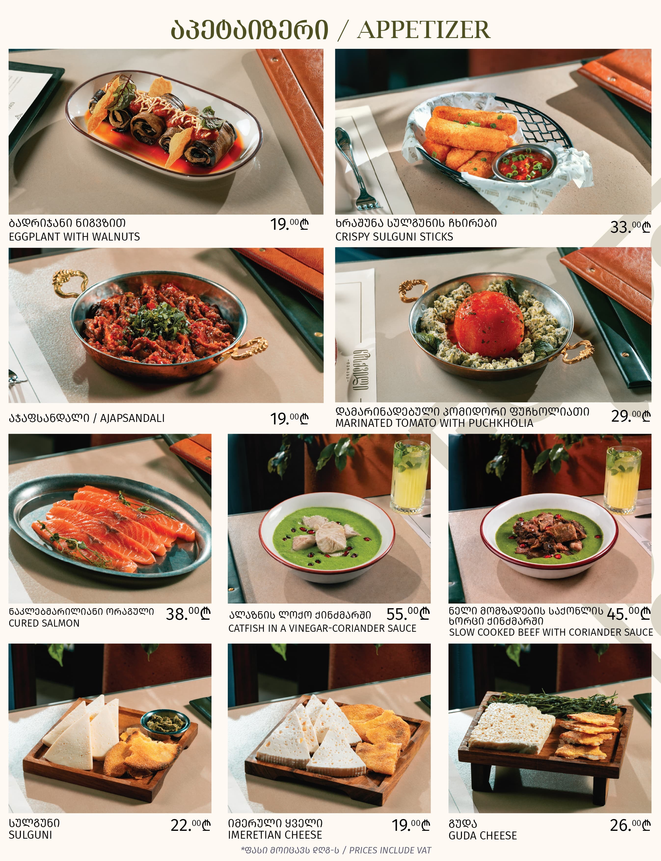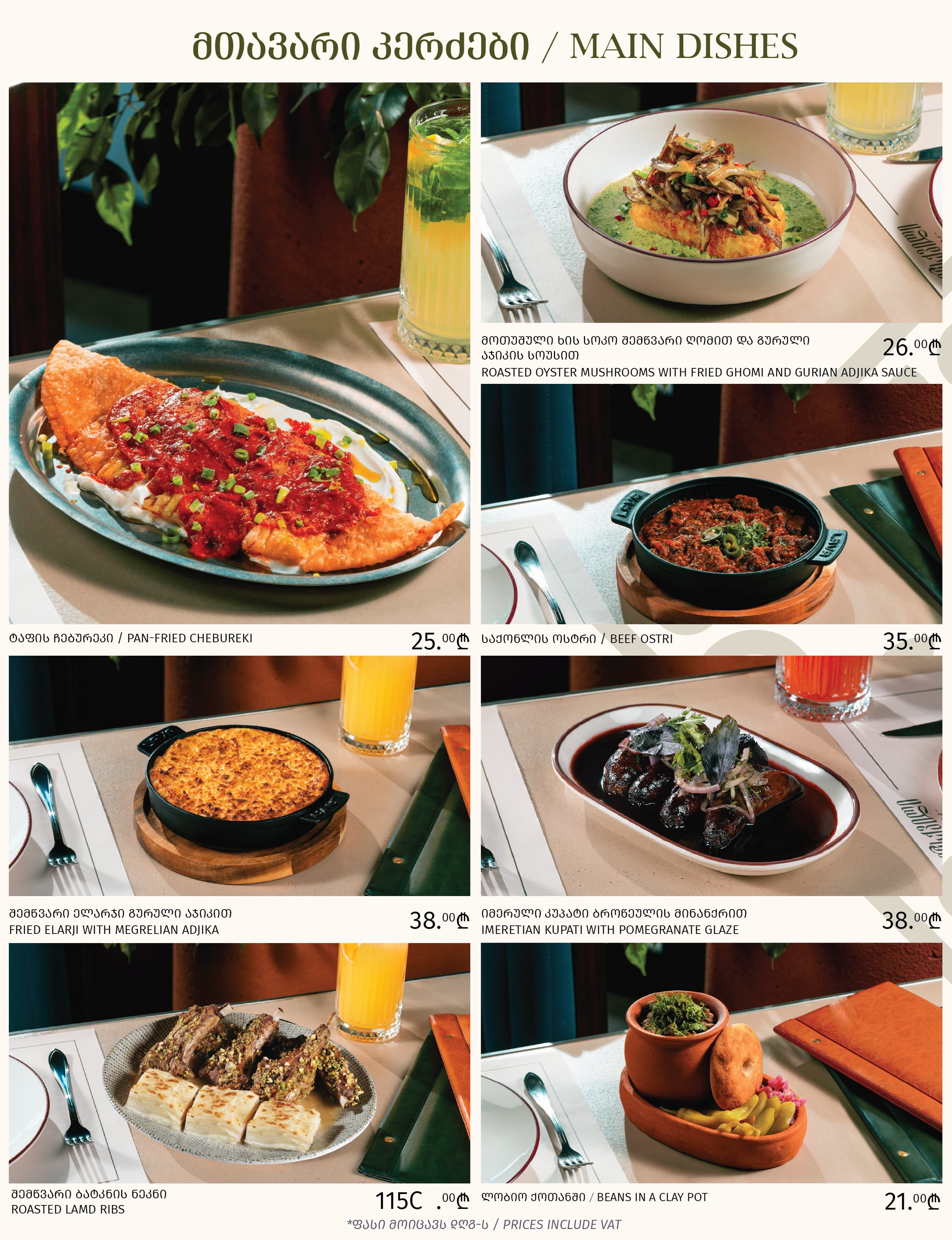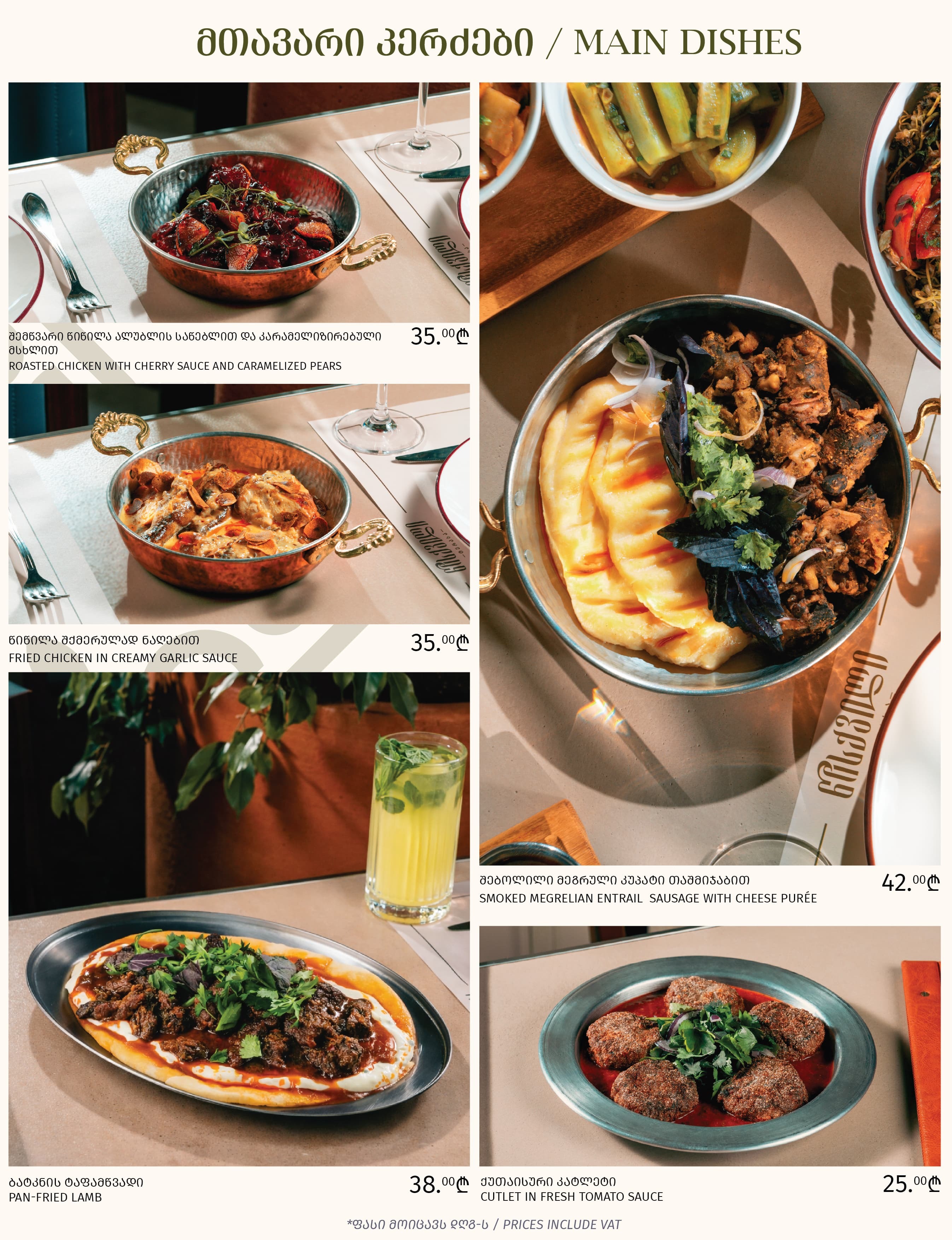 წისქვილი ჯგუფის რესტორნების მენიუ