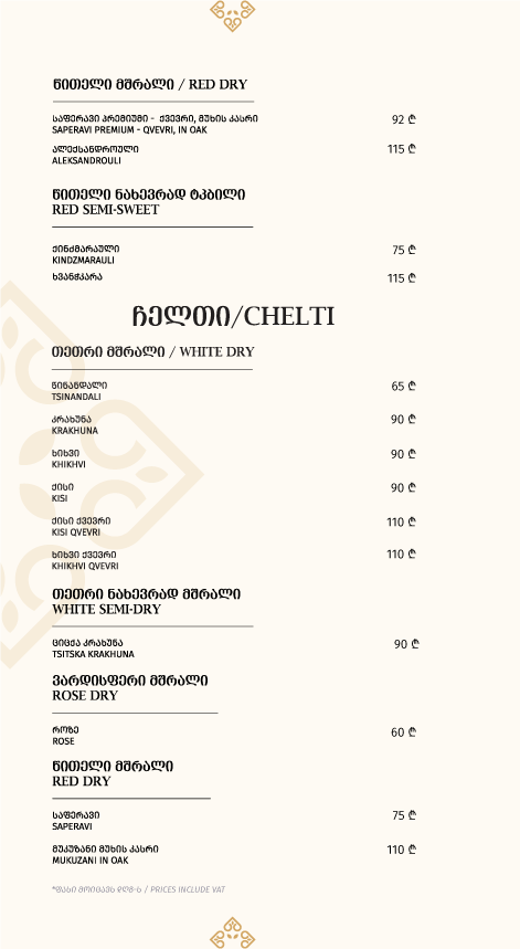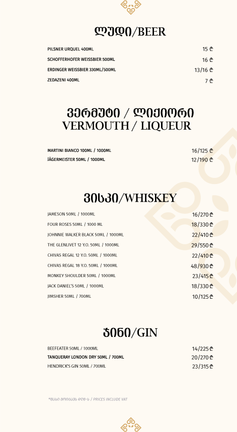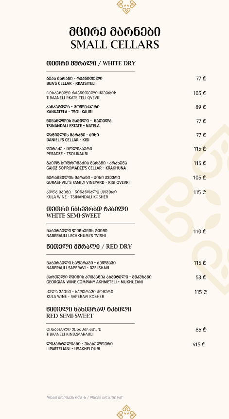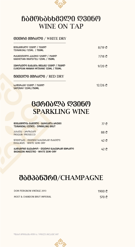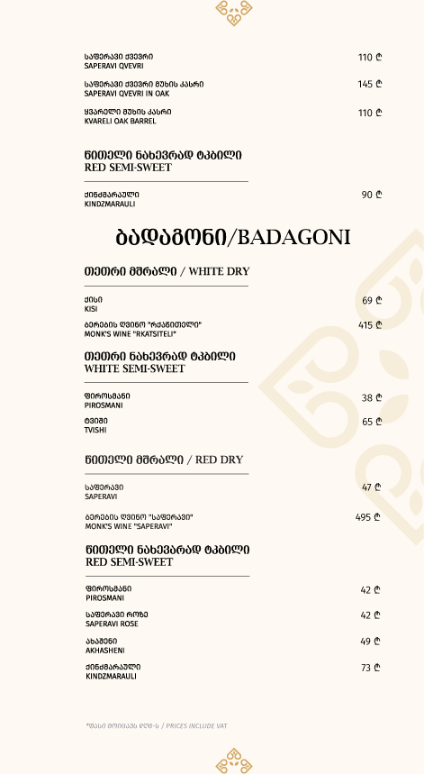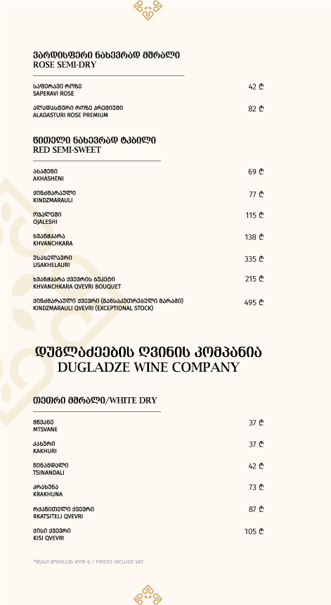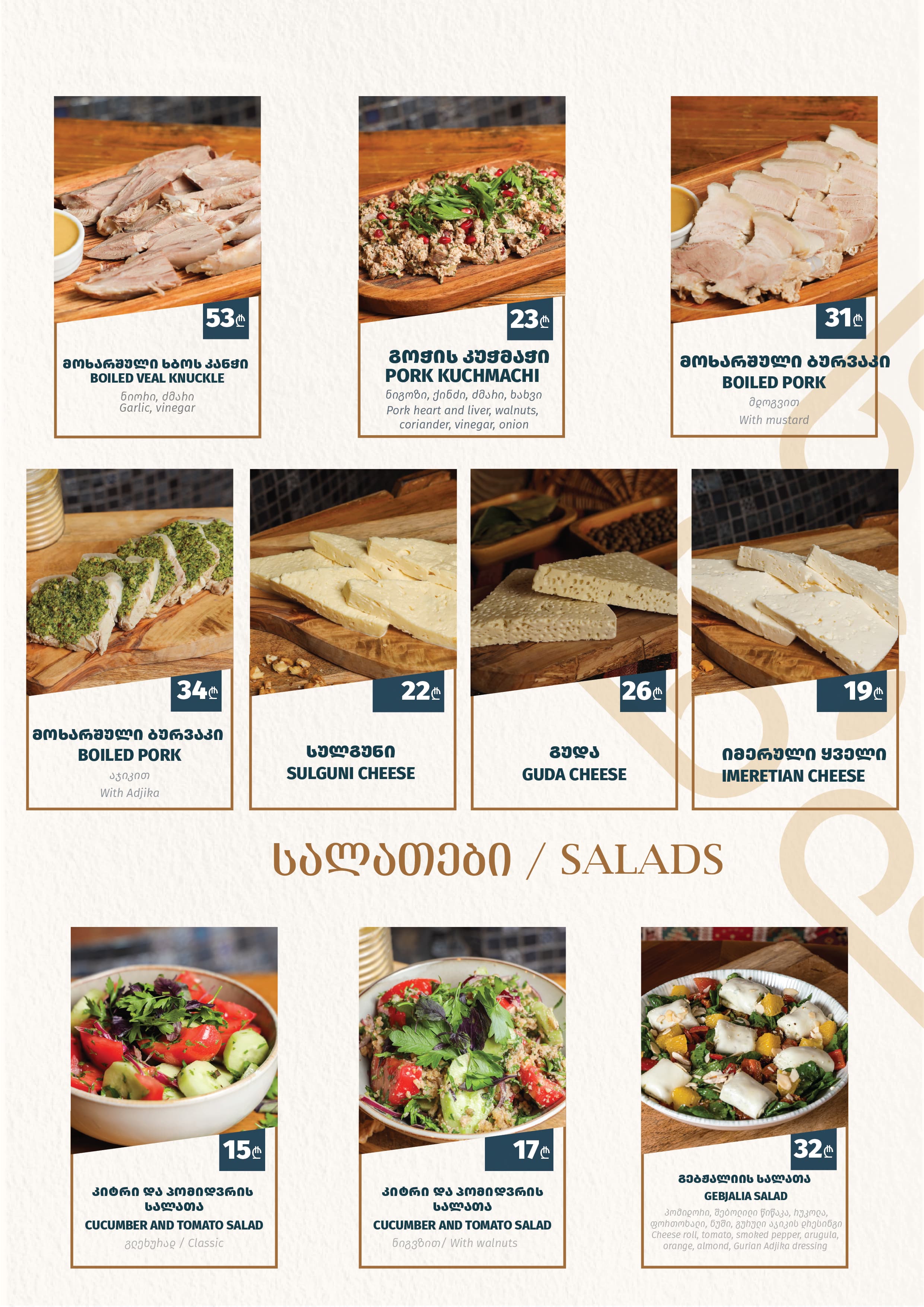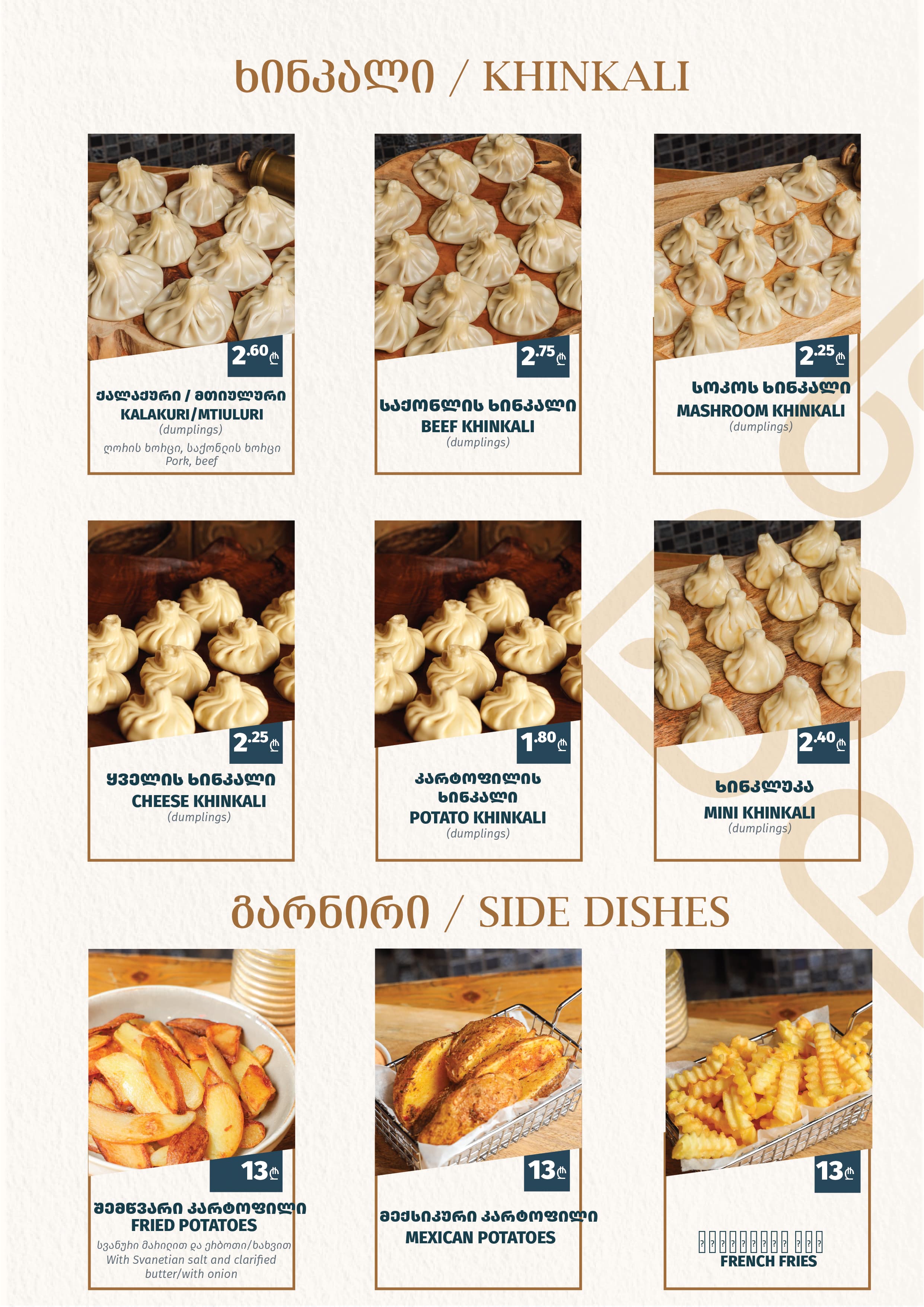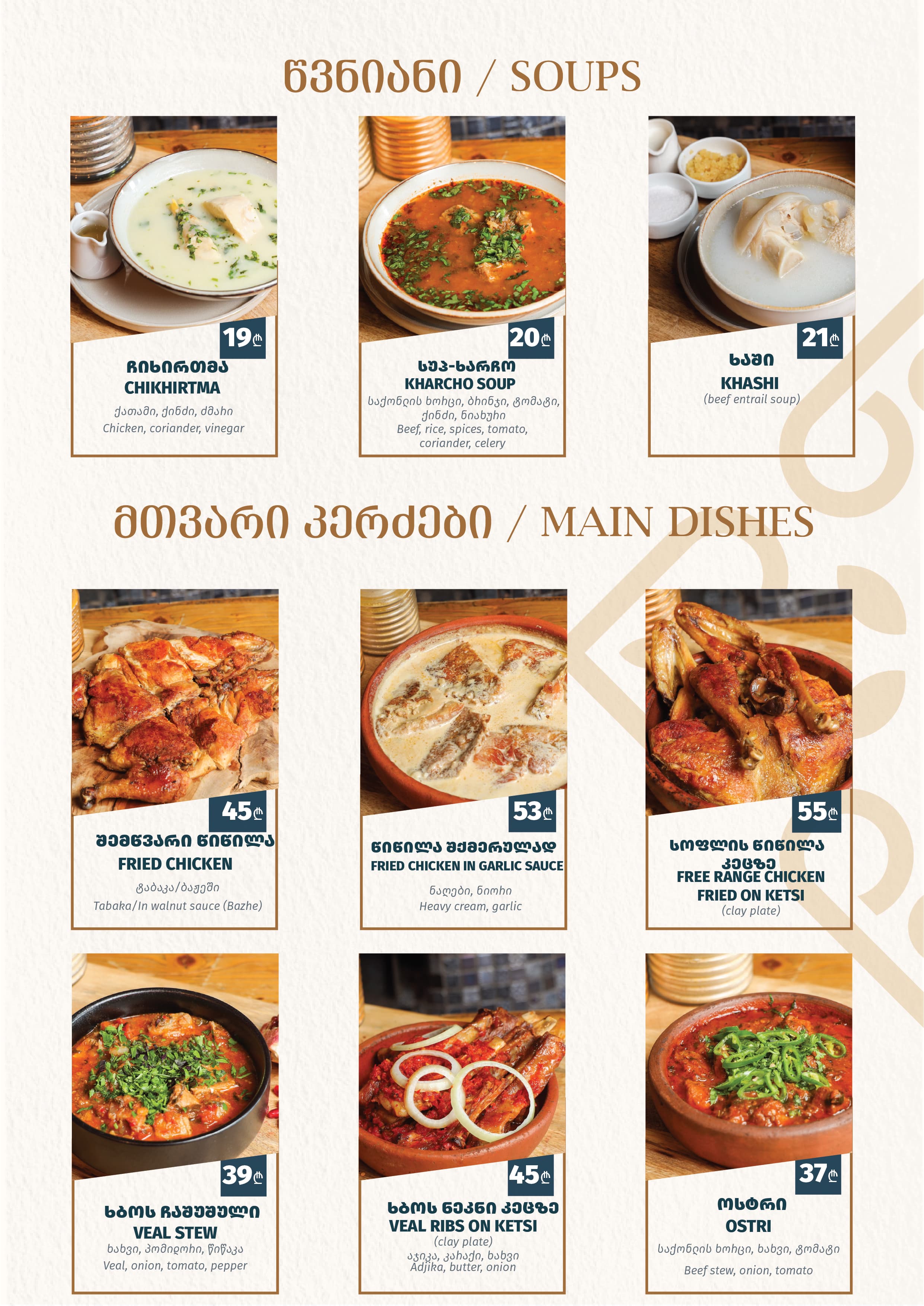 წისქვილი ჯგუფის რესტორნების მენიუ