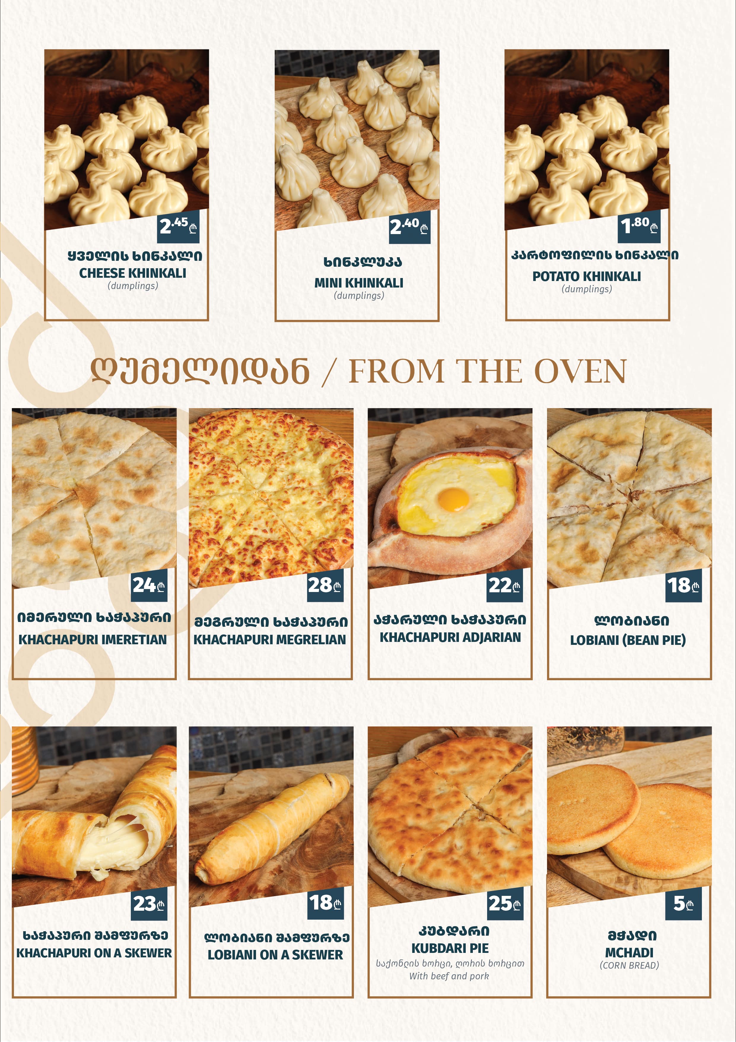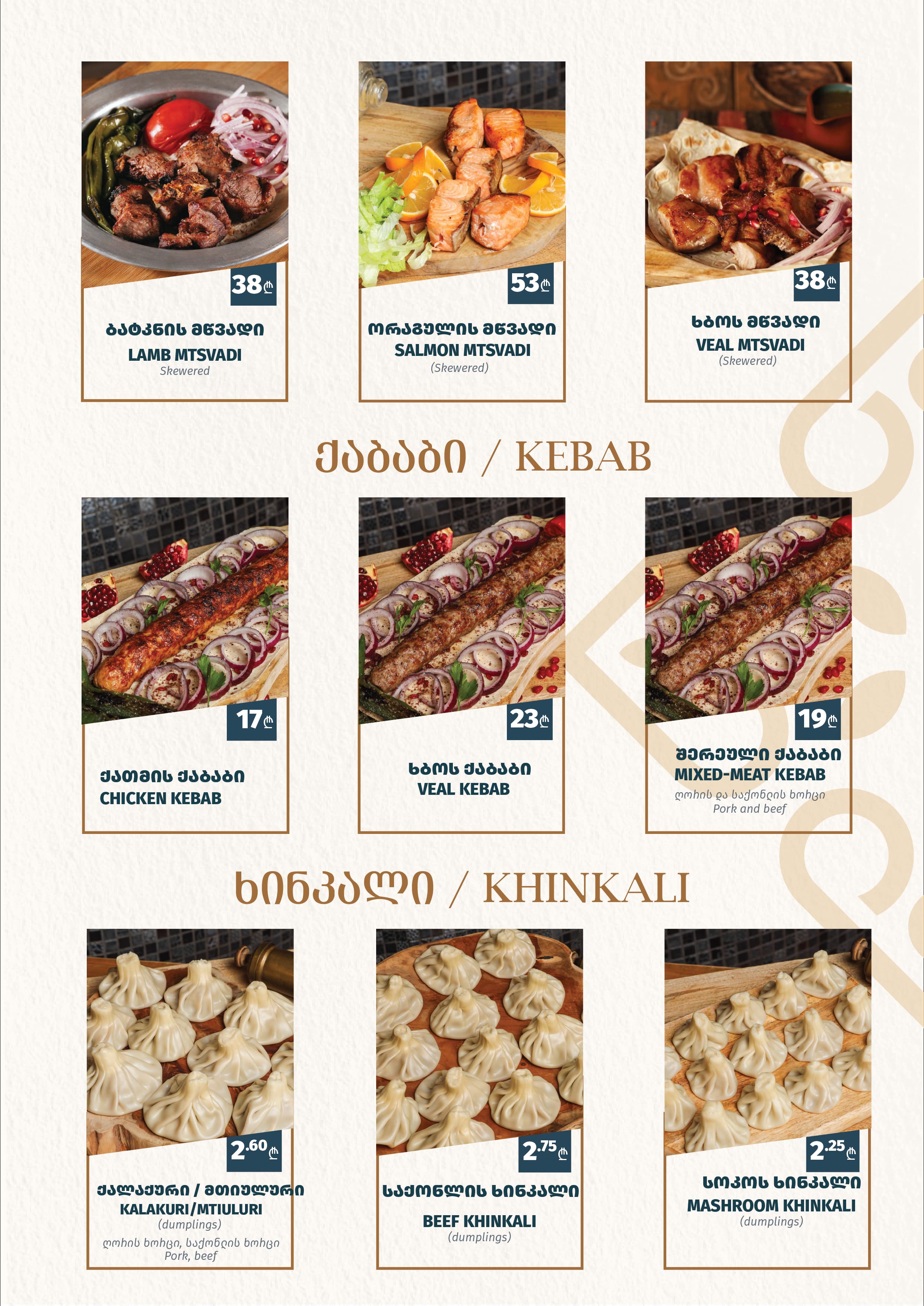რესტორნის თემატიკა კვლავ ქართული კულტურის სრული ასახვაა. შესაბამისად, თბილისის შუაგულში მდებარე გასტრონომიული სივრცე შესაძლებლობას გაძლევთ, რომ დააგემოვნოთ საქართველოს ყველა კუთხის სამზარეულო.